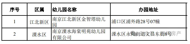 今年也新增了2所民办幼儿园,分别是:南京江北新区金智塔幼儿园、南京溧水海棠明苑幼儿园有限公司。