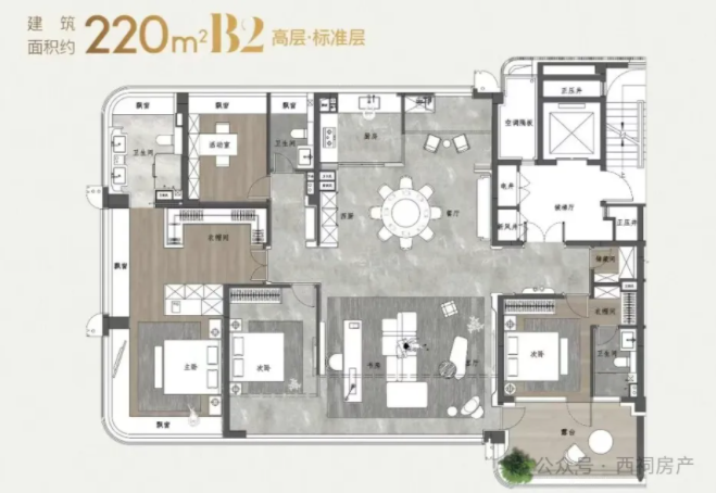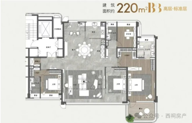 建面约220㎡高层户型图↓