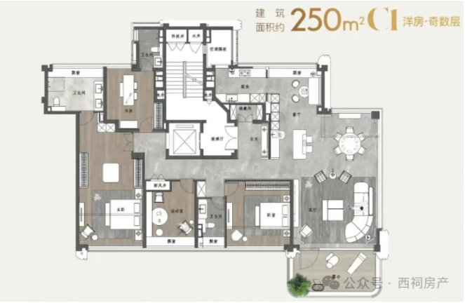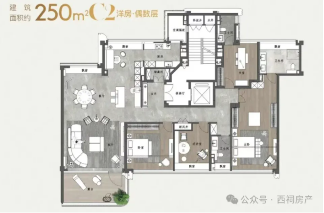 建面约250㎡洋房户型图↓