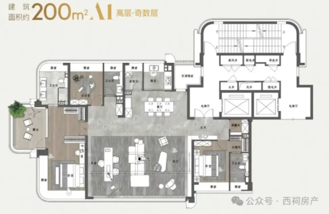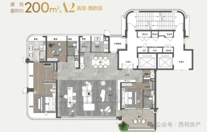建面约200㎡高层户型图↓