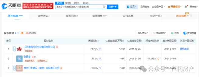 天眼查显示,南京江宁市政建设房地产开发有限公司控股大股东为景枫集团。