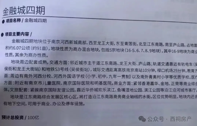 据前期资料显示,该地块计划打造成金融城四期,是江东南路综合发展区核心区,将打造沿江东南路商务商业轴线的水街,预计总投资100亿元。