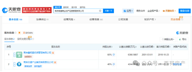 天眼查显示,南京朗通由南京鑫明盛投资管理有限公司(朗诗)、南京交通产业集团有限责任公司分别控股60%、40%。