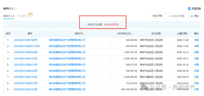 目前,南京朗通已被限制高消费、被列为被执行人,被执行总金额约为4.6亿元。