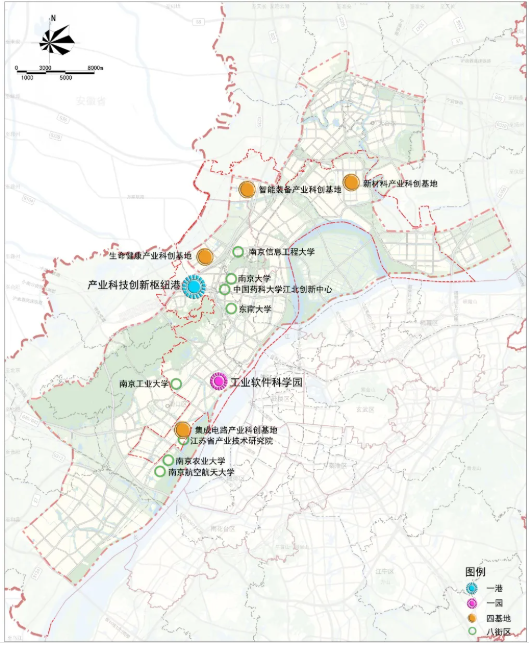 2025年3月,南京江北新区管理委员会发布《扬子江产业科技创新试验区建设方案》,构建一港、一园、四基地、八基地总体布局,打造产业科技创新枢纽港、工业软件科学园、新兴产业科创基地和成果转换创新街区协同创新体系。