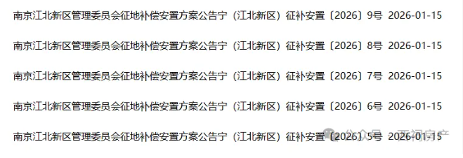 1月15日,江北新区官方连发5条征地公告,启动南京北站产业科技创新枢纽港1-5期项目征地!