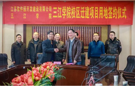 2017年12月30日,江苏软件园开发建设有限公司与三江学院就三江学院校区迁建项目用地进行了签约仪式。