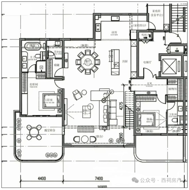 配置家政间:北向有厨房,U型设计,连接家政间(由设备平台改造),扩大生活空间。