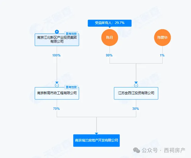 值得关注的是,该项目引入一家民企开发商。天眼查显示,南京瑞兰房地产开发有限公司由产投集团和江苏金西江投资有限公司共同控股。