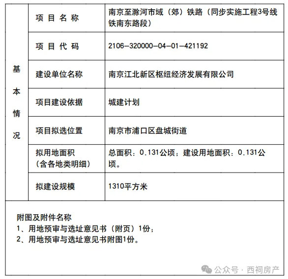 与此同时,南京北站枢纽轨道交通配套——宁滁城际建设迈出关键一步!近日,南京至滁河市域铁路(同步实施工程3号线铁南东路段)预审选址获批。根据文件显示,项目建设单位为南京江北新区枢纽经济发展有限公司,拟用地面积为0.131公顷。