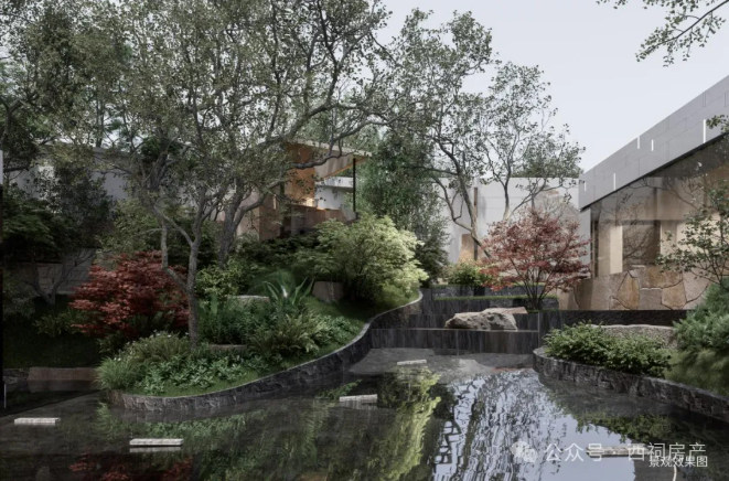 首个山谷主题景观:以“流动的山谷”为设计理念,打造金基首个山谷森屿主题景观,规划瀑廊、溪径、林野、丘屿四大主题场景,同时搭配L型公园带,形成互动式、沉浸式立体生态场域,让园林景观自然生长。