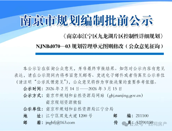 《南京市江宁区滨江新城江宁组团控制性详细规划》NJNBf010—10规划管理单元图则修改(公众意见征询)发布,江宁滨江新增2幅低密宅地。