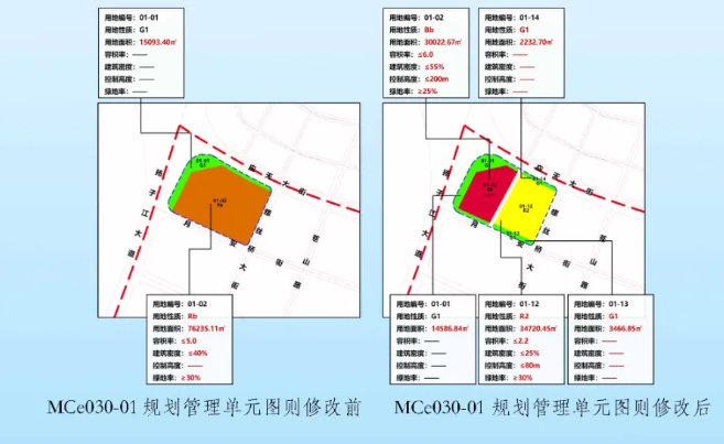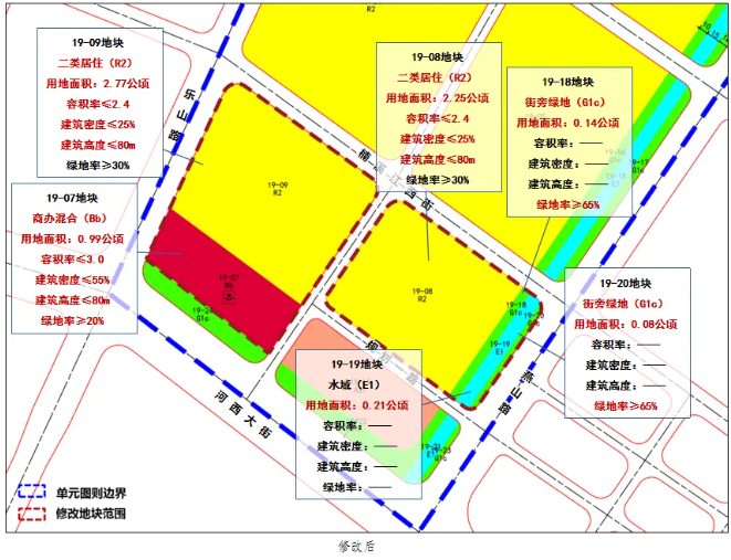 合并后,该地块为二类居住用地,容积率≤2.4,建筑密度≤27.5%,建筑高度≤80米,绿地率≥30%。