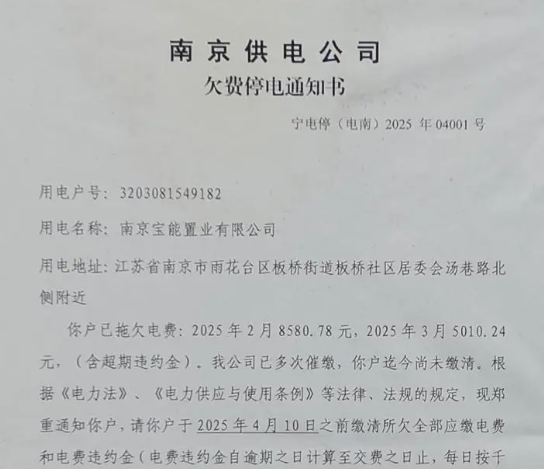 此外,有网友报爆料,项目二期工地大门上贴有多张供电部门的电费欠费停电通知书,其欠费已经达到一万多元。