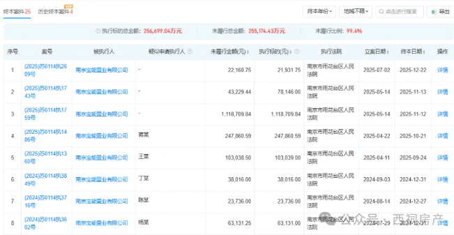 天眼查显示,南京宝能置业有限公司债务缠身,已被列为失信被执行人、被执行人,执行标的总金额为256699.04万元,其中未履行总金额为255174.43万元。