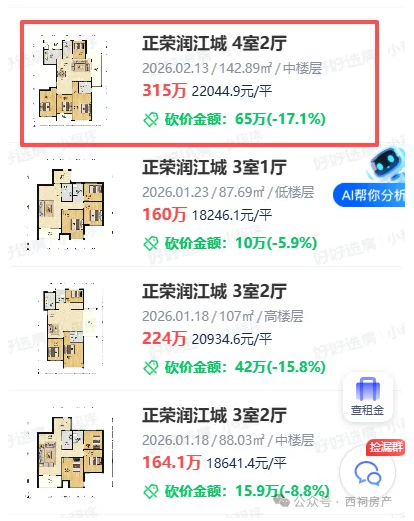 同区域的正荣润江城一套约143㎡房源,更是以约2.2万元/㎡的单价成交,创下该小区近半年来的新高。