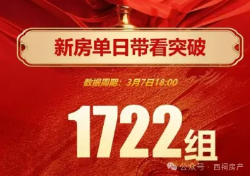 据悉,仅贝壳单一渠道,本周六(3月7日)新房单日带看突破1722组!
