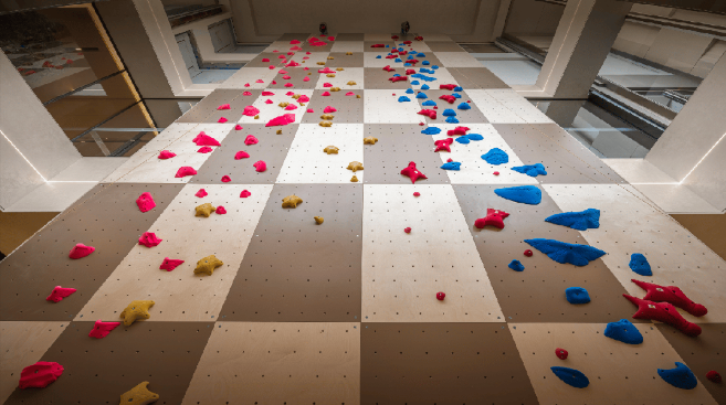15.5米国际标准攀岩墙、7米净高篮球场、标准围绳搏击台、红双喜顶级赛台与顶级器械齐备,搭配全时大屏、专业音响与裁判系统,让业主下楼即享赛事级体验。