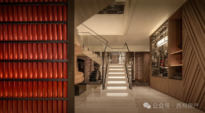 颠覆司空见惯的下沉式庭院,将一座三层楼宇安放于此,串联地下会所、架空层、空中花园。超2000㎡的立体景观体系,以9米垂直落差打造 “垂直峡谷”,耗资超200万的“一眼万年”珐琅艺术光轴...将自然、艺术与生活深度融合。
