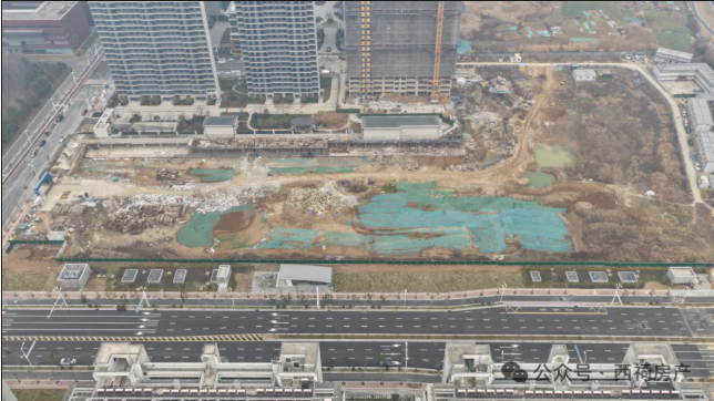 今年1月,西祠房产曾实探现场,看到北区商业(购物中心)所在地块,工地无进展,大门无人值守,地上堆满建材和建筑垃圾。