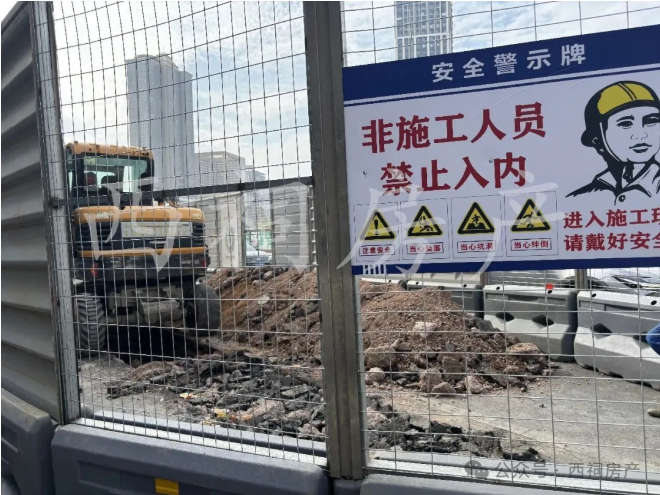 3月26日,湖南路改造工程迎来实质性动作。西祠房产在湖南路与中山北路交汇处实探发现,现场已立起橙色施工告示牌,“限速30码”“道路施工 减速慢行”的警示格外醒目。