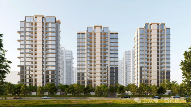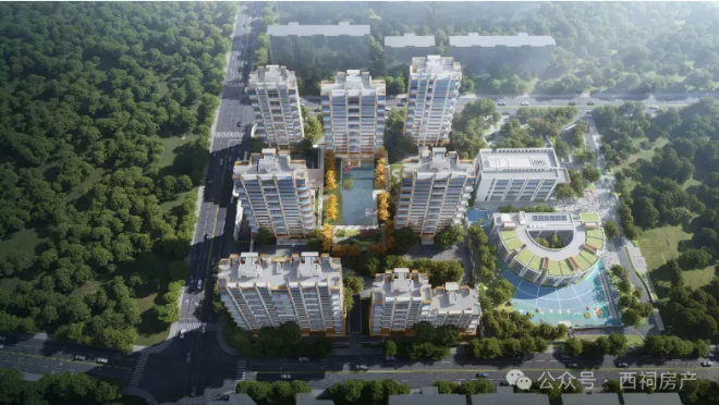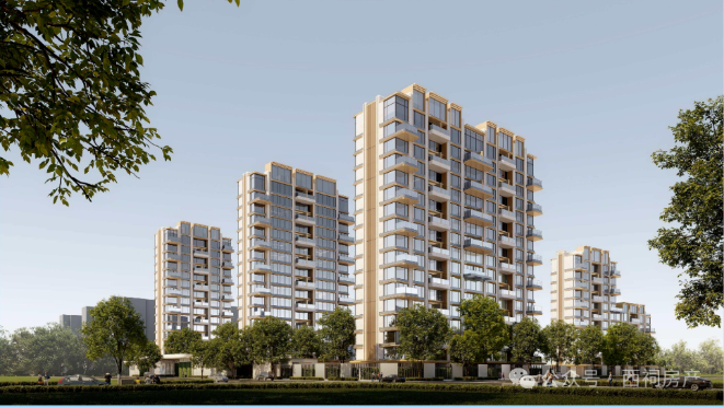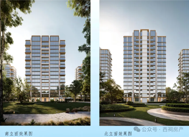 整个楼栋成围合式布局,中间留有大面积景观设计,包括下沉庭院、超大绿地等。