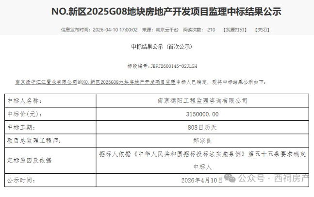 近日,备受关注的江北核心区小鱼嘴G08地块传出重磅进展:项目的工程监理、总承包及全过程咨询等中标结果陆续出炉,这意味着项目即将进入全面建设阶段。