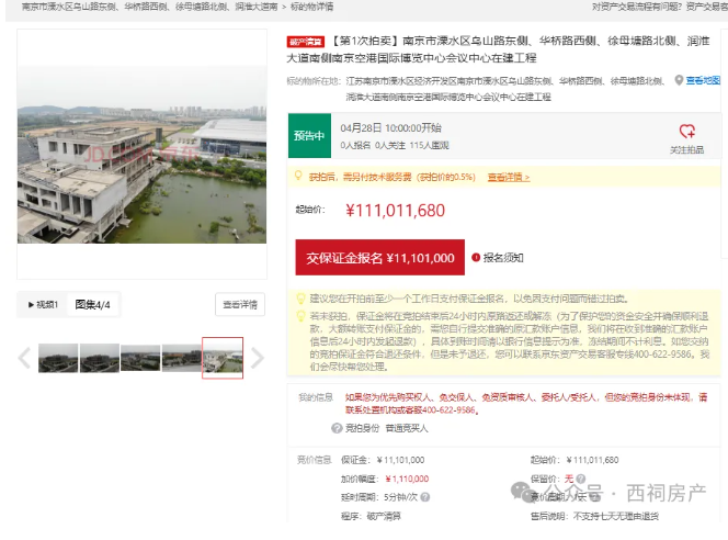 近日,“南京京市溧水区乌山路东侧、华桥路西侧、徐母塘路北侧、润淮大道南侧南京空港国际博览中心会议中心在建工程”即南京空港国际博览中心配套的会议中心以及酒店上架京东资产交易平台。