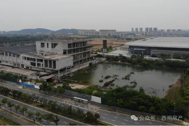 资料显示,会议中心工程于2020年4月正式开工,现已停工多年、长期闲置。目前项目基坑支护、桩基、主体结构、砌体二次结构及墙体粉刷均已完工,尚未完成竣工验收,处于停滞状态。