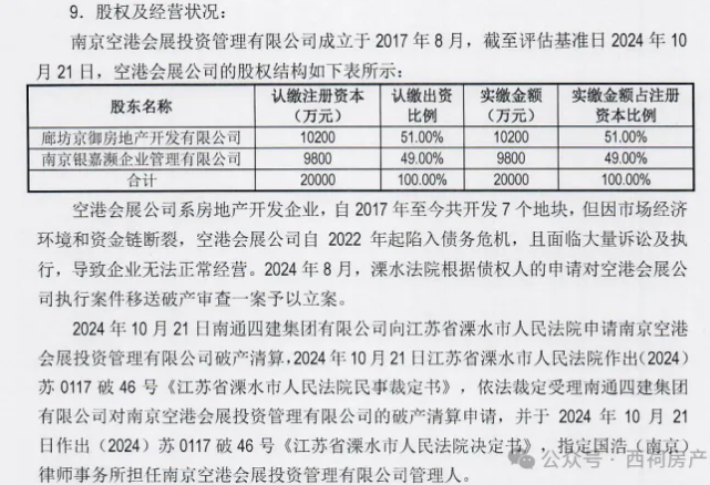 随着债务风险持续发酵,2024年10月,南京空港会展投资管理有限公司被法院依法裁定破产清算。这座曾经备受期待的城市地标,也随之黯然落幕。