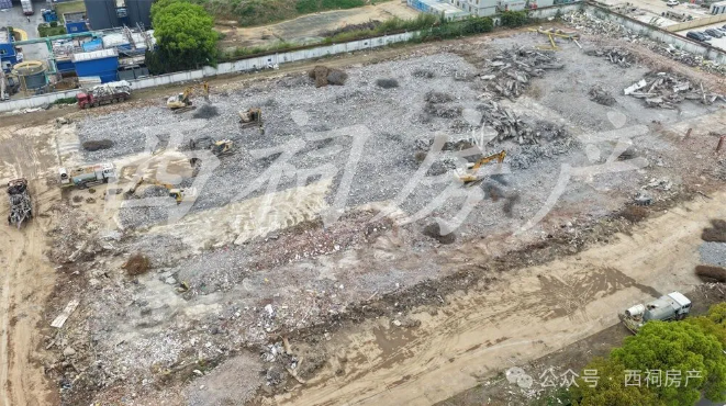 目前已有部分厂房完成拆除,场地内遍布建筑瓦砾与废弃残渣。
