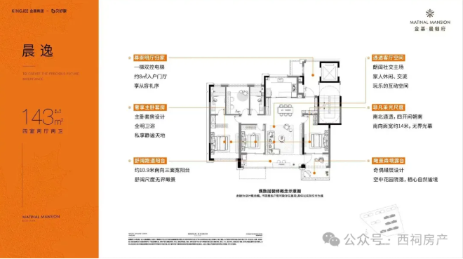 建面约116㎡三房与143㎡四房,均配置入户明厅、南向宽幕、主卧套房及瞰景露台,实现人本化改善。