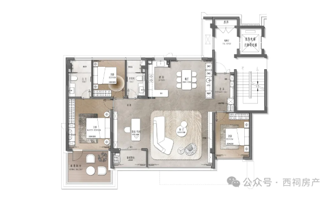三独立体系,对标河西顶豪:全明独立电梯厅+独立玄关+独立家政间,复刻河西 200㎡以上豪宅配置,从归家到居家,私密感与体面感全程在线;