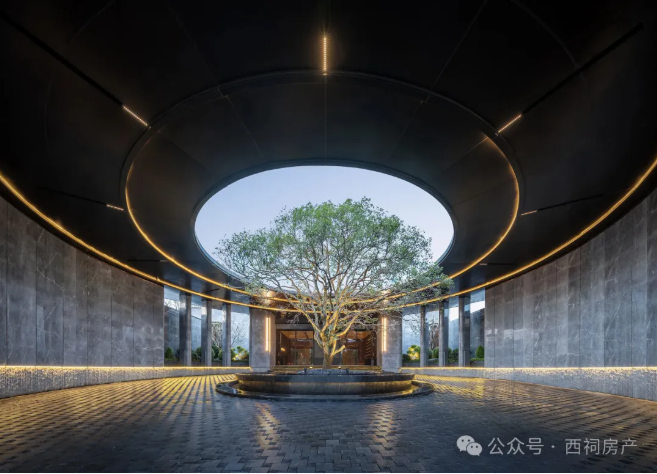 来自九华山的百年金桂古树,立于正中心圆形穹顶下,是归家时静默的守候,更开启了“金桂凝香逾百年,一河灯影映秦淮”诗意生活。