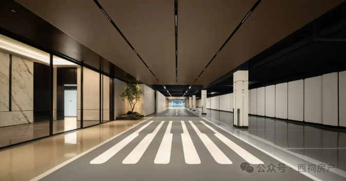 双落客精装大堂,首层挑高逾6米,地下约4米!板块内首个且唯一!入户光厅最小44㎡。岩板景墙映着温润灯光。归家仪式感和安全感,从地面一直延续到地库深处。
